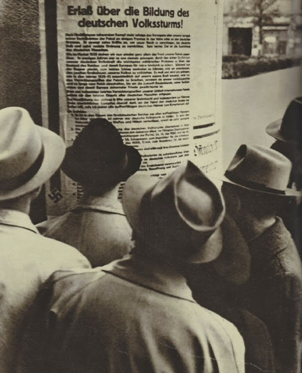 As terríveis perdas sofridas pelo exército alemão e os problemas em recrutar novos soldados, obrigaram os nazistas a modificar os anteriores parâmetros muito mais restritivos e a iniciar um recrutamento maciço e obrigatório de todos os homens com idade entre 16 e 60 anos, mediante um edito emitido pelo próprio Hitler.
