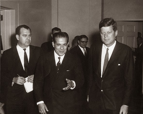 A maioria de nós certamente identifica o presidente americano John Kennedy na foto acima sem maiores dificuldades, entretanto, talvez sejam poucos os brasileiros capazes de identificar o simpático senhor do centro. Vai uma pista: ele era o legítimo presidente do Brasil quando os militares deram o golpe de estado em 1964, instaurando a ditadura no país. A pergunta, é claro, só pode ser: Qual o nome dele?